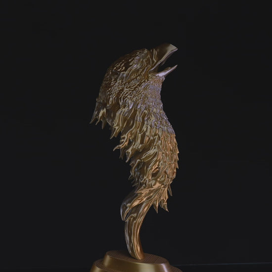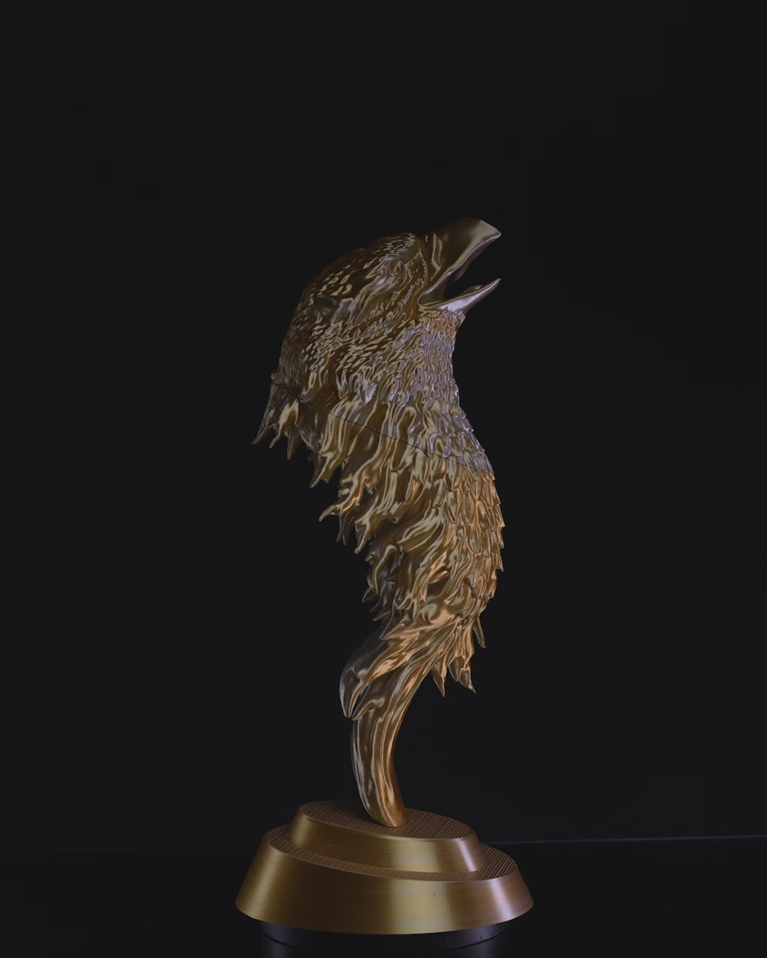 Unleash the spirit of flame and freedom with the awe-inspiring 3D Printed Firehawk Statue. This dynamic sculpture captures the essence of a majestic hawk mid-cry, its sleek form merging seamlessly into flames that rise from the base like a fiery trail. Expertly crafted the statue showcases stunning detail from the intricately textured feathers to the molten, flame-like plumage flowing down its body.
