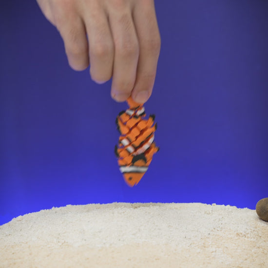 Bring the charm of the coral reef to your home with this 3D printed articulated clownfish! Designed with vibrant orange, white, and black segmented scales, this flexible figure mimics the graceful movement of a real clownfish. The articulated joints make it perfect for fidgeting, displaying, or imaginative play. Lightweight yet sturdy, this aquatic creation is an eye-catching piece for marine life enthusiasts, kids, or collectors of unique 3D printed art.