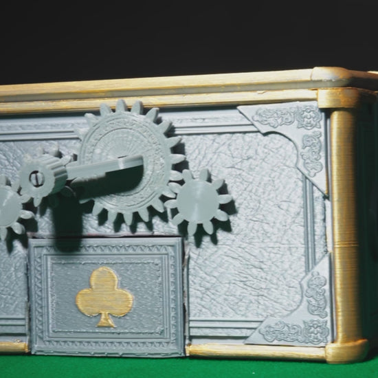Add a touch of vintage steampunk flair to your game night with the 3D Printed Automato Card Shuffler! Designed to impress and built for function, this mechanical-style card shuffler features a gear-driven crank mechanism that mixes two decks with ease. The dual-card chamber mimics old-world engineering, while ornate frame detailing, club and spade suit emblems, and hand-painted metallic gold accents give it an air of sophisticated craftsmanship.