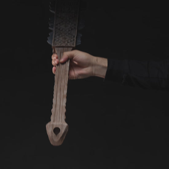 Channel the might of Mesoamerican warriors with this stunning 3D Printed Macuahuitl Aztec Club. Inspired by authentic Aztec weaponry, this ceremonial-style replica features a beautifully detailed, hieroglyphic-style engraving along the wooden frame and a jagged edge lined with translucent obsidian-like blades.