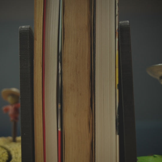 - 📚 Functional Art: Both sides securely hold your books upright while turning your shelf into a whimsical story of extraterrestrial mischief.