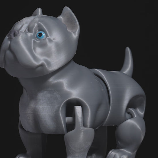 Crafted in a sleek metallic gray finish, each figurine features detailed musculature, expressive facial wrinkles, and fully poseable limbs, making it a delightful collectible or desk companion. Whether you're a dog lover, a 3D print enthusiast, or just need a dose of puppy charm, this American Bully figurine is sure to fetch some smiles.