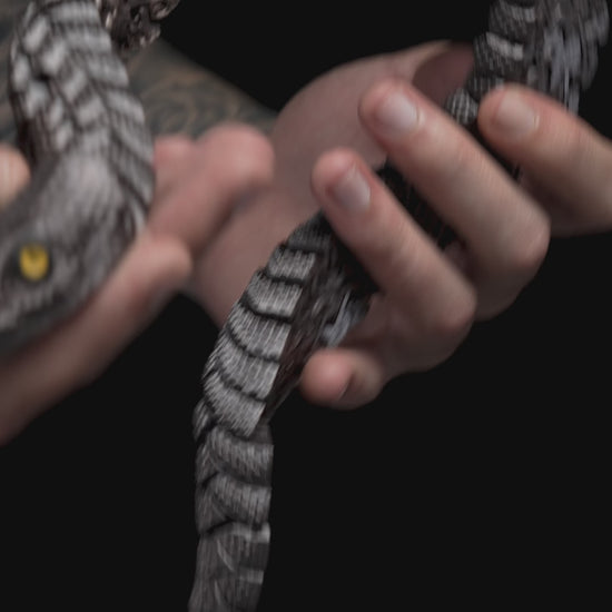 Printed in high-quality filament with a segmented, posable body, this bush viper makes an excellent fidget toy, desk decoration, or conversation piece for reptile lovers and collectors alike.