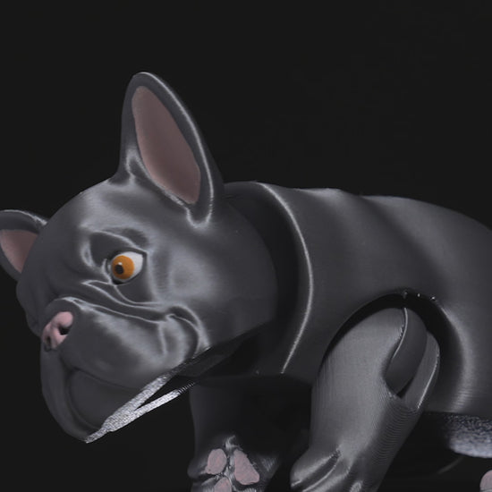 Meet your new favorite desk buddy – the 3D Printed Articulated French Bulldog in a relaxed, laying-down pose! With its sleek metallic gray finish, expressive orange eyes, and pink-tipped ears and nose, this pup captures the charm and attitude of a real Frenchie. Designed with multiple articulated joints for subtle movement and a lifelike feel, it's perfect as a collectible, fidget toy, or gift for dog lovers.