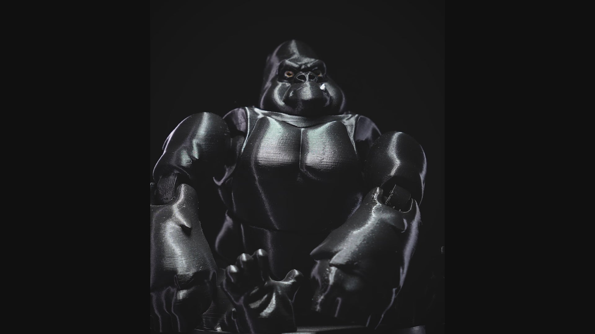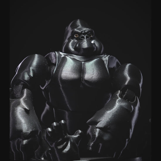 Unleash primal power with this 3D Printed Articulated Gorilla, captured in a fierce prowling stance. Crafted in sleek matte black filament with subtle green undertones, this dynamic figure features expressive eyes, prominent fangs, and rugged, poseable limbs that bring the beast to life. Ideal for collectors, desk guardians, or jungle-themed setups, this articulated gorilla combines menace and mobility in one captivating display piece.