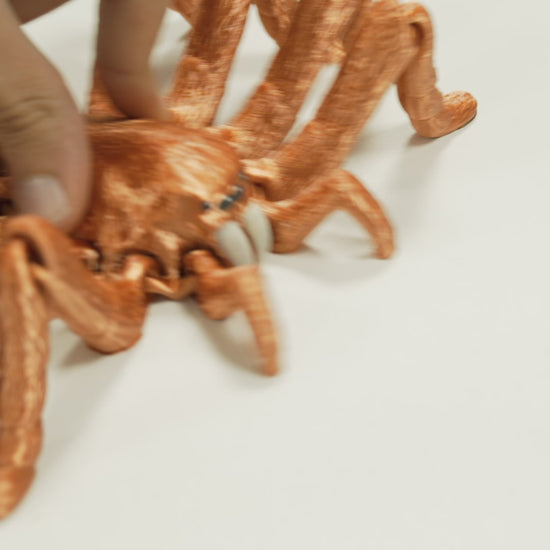 Creep it real with this eye-catching 3D Printed Articulated Tarantula! Designed with impressive detail and fully poseable legs, this realistic spider model brings a fun, creepy-crawly twist to your desk, shelf, or Halloween décor. Printed in a striking metallic red filament, the tarantula features lifelike texture, movable joints, and fang details that add an extra bite of personality. Whether you're a fan of arachnids, a collector of articulated creatures, or just looking to prank your friends, this tarantula is a perfect pick.