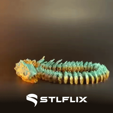 Unleash the myth with this striking 3D printed Boitatá, the legendary fire serpent from Brazilian folklore. This articulated model coils with fierce presence, blending vibrant orange flames and cool oceanic blue scales to create a stunning dual-tone effect. Its segmented, poseable body flows like a living flame, while its detailed sculpt features jagged spines, curling fire patterns, and an expressive serpentine head.