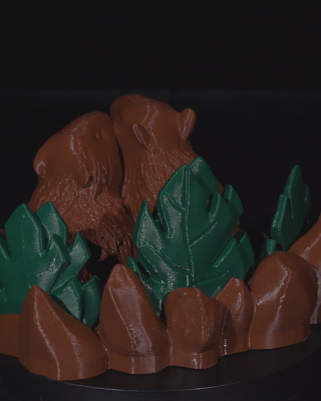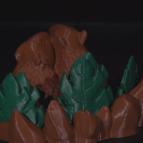 Celebrate the charm of capybara companionship with the Capy Couple Statue, a heartwarming 3D printed piece capturing two adorable capybaras soaking together in a peaceful woodland hot spring. With intricate fur textures, bright yellow floating flowers, and lush green foliage in the background, this lovingly designed sculpture brings warmth and whimsy to any shelf or display.