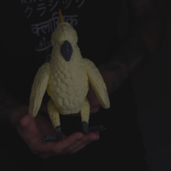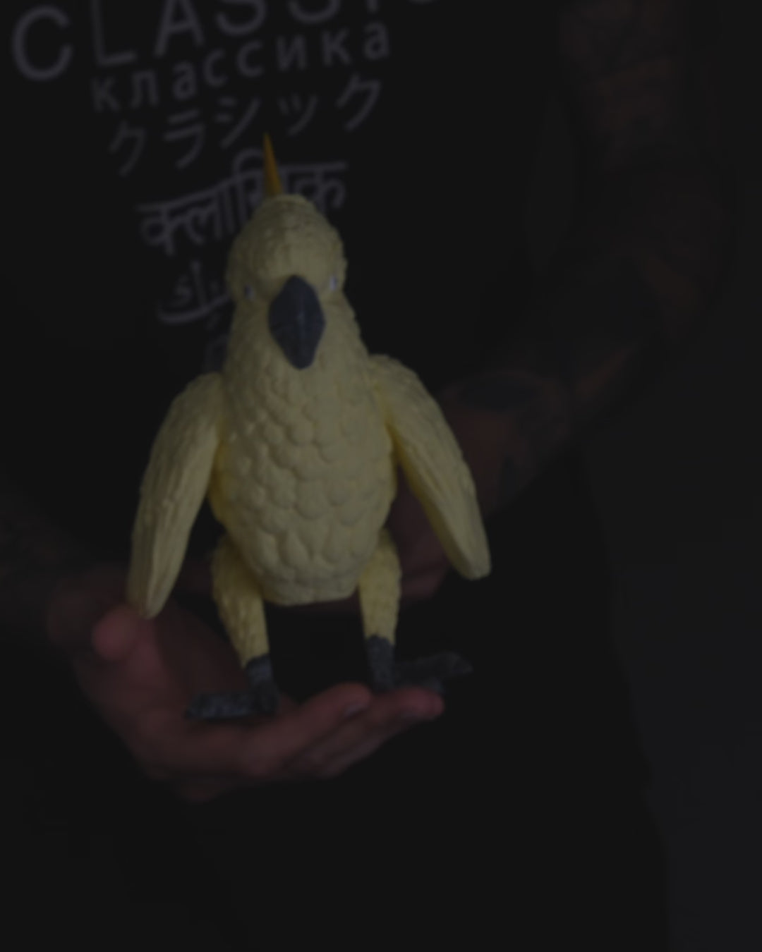 Meet Cha-Cha-Too – the sassy, strutting cockatoo with a bold attitude and even bolder crest! This 3D printed showstopper brings tropical flair to your shelf, desk, or display case with a stylized spin on the iconic sulphur-crested cockatoo. Sculpted in high detail, Cha-Cha-Too features finely textured feathers, a wide-footed stance full of personality, and a sleek, matte-black beak and talons that contrast beautifully against its pale yellow body.