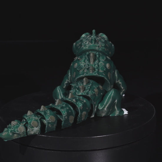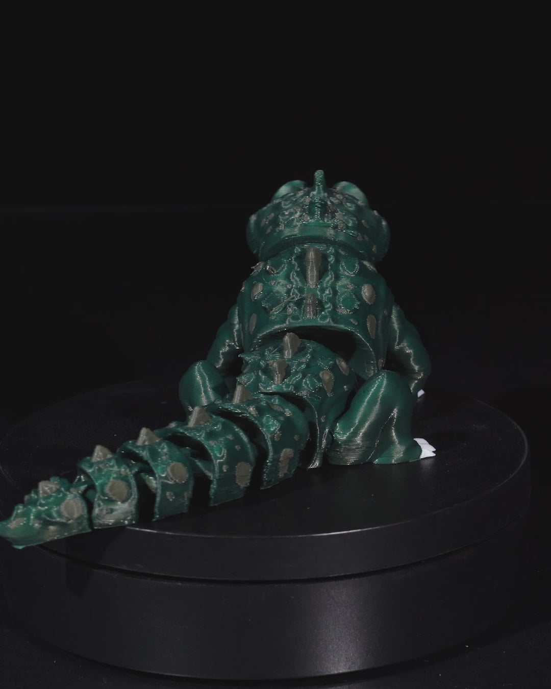 Add a splash of playful mischief to your collection with this 3D Printed Articulated Crocodile! Featuring a cartoonish grin, bulging eyes, and exaggerated white claws, this goofy gator is full of character. Printed in a deep jungle green with light tan spots and fully articulated along its body and tail, it’s perfect for posing, fidgeting, or simply displaying with pride.