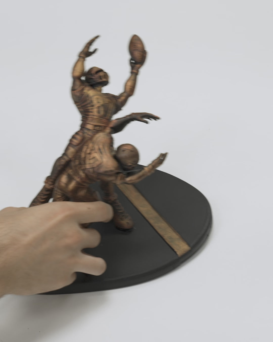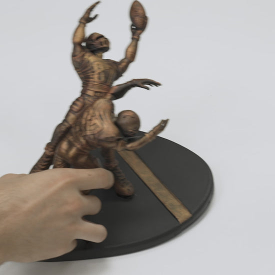 Capture the intensity of victory with the Game-Winning Touchdown, a dynamic 3D printed football statue that immortalizes the exact moment a receiver stretches for glory while being tackled mid-air. Designed with striking realism and posed drama, this piece showcases two players in full gear—one airborne and fully extended with the football in hand, the other executing a last-second tackle in a desperate bid to stop him.