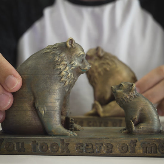 Expertly 3D printed in a rich bronze-gold iridescent filament, the statue showcases lifelike textures and warm tones that capture both the strength and tenderness of the bear duo. Its elegant design and meaningful message make it a timeless addition to mantels, desks, or display shelves.